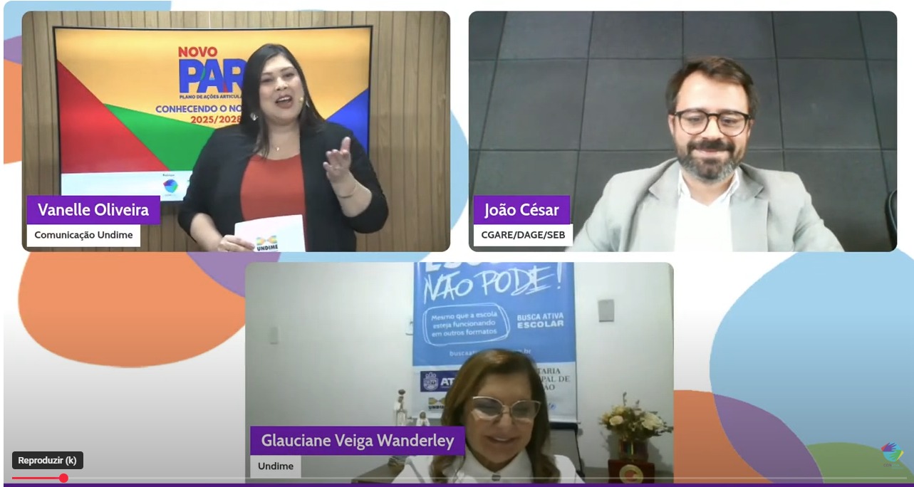 A transmissão contou com o apoio do MEC e mostrou o desenho do Novo PAR, destacando as principais mudanças em relação aos ciclos anteriores, esclareceu sobre o cronograma de implementação do ciclo e o que os dirigentes devem fazer neste momento para participar do Novo PAR. Além disso, foi feita uma navegação no novo sistema mostrando as principais funcionalidades e as possibilidades de apoiar a gestão educacional.