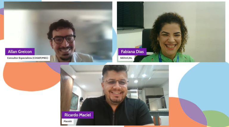 Participantes – O webinário contou com dois membros da Rede Nacional de Articuladores Técnicos do Programa Escola das Adolescências (Renapea): a superintendente do Desenvolvimento do Ensino Fundamental da Secretaria de Estado da Educação de Alagoas, Fabiana Alves Dias, e o coordenador técnico dos Anos Finais de Maceió, Ricardo Almeida Maciel.