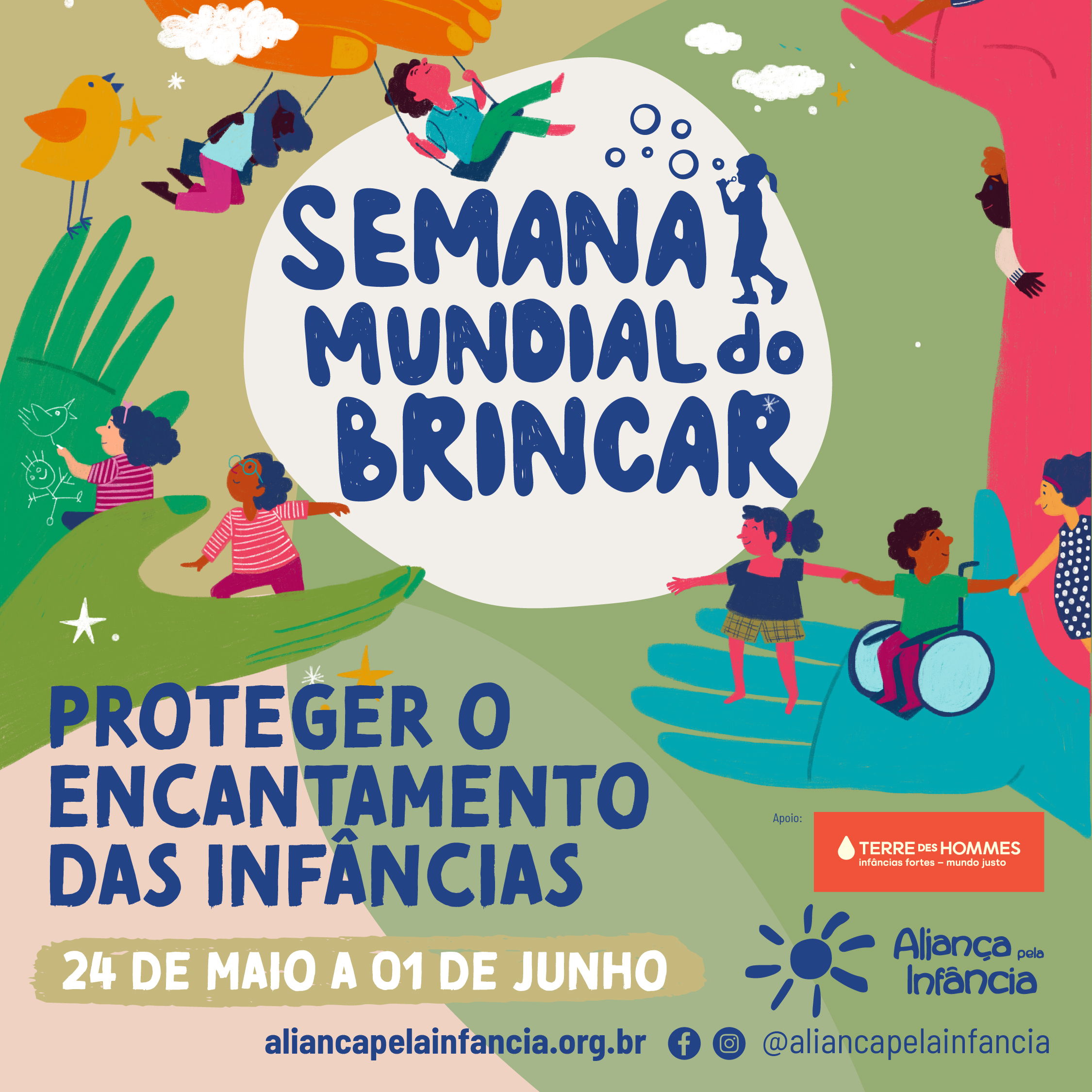 Promovida pela Aliança pela Infância no Brasil, com o apoio da terre des hommes – Alemanha (tdh-A), a Semana Mundial do Brincar acontece sempre em torno do Dia Mundial do Brincar (28 de maio) e visa convocar uma participação coletiva para valorizar o ato de brincar, ressaltando sua importância no desenvolvimento das crianças e criando oportunidades para que o brincar aconteça em diferentes contextos.