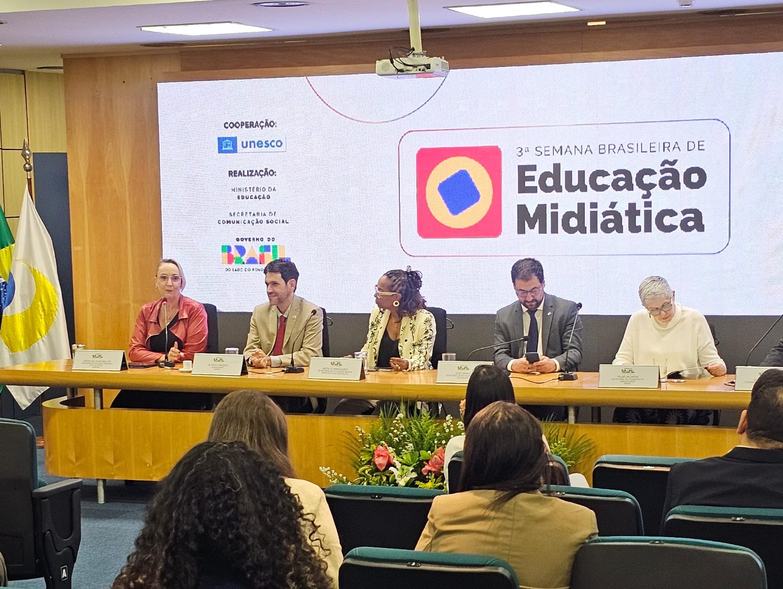 Na ocasião, a Undime foi representada pela assessora de políticas públicas educacionais, Vivian Ka. Também compuseram a mesa de abertura João Brant, secretário de Políticas Digitais da Secretaria de Comunicação Social da Presidência da República; Kátia Schweickardt, secretária de Educação Básica do MEC; Pilar Lacerda, secretária da Criança e do Adolescente do Ministério dos Direitos Humanos; Octavio Pierant, conselheiro da Agência Nacional de Telecomunicações (Anatel); e Adauto Soares, coordenador de Comunicação e Informação da Unesco no Brasil.