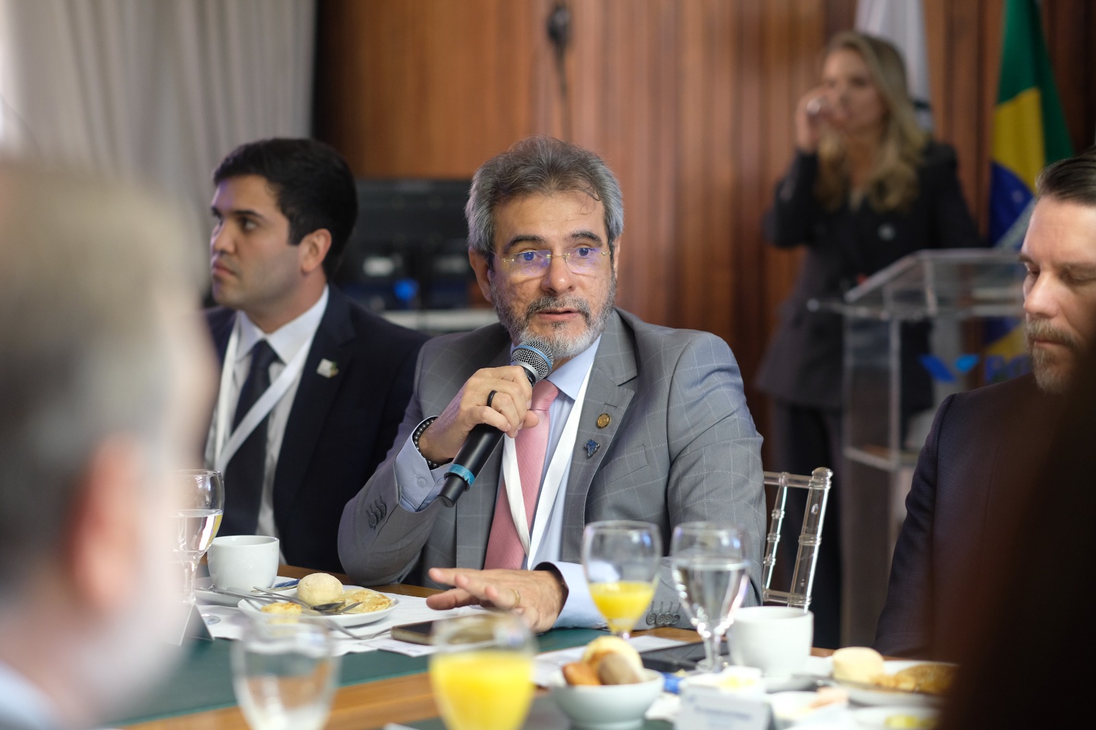 O presidente nacional da Undime e Dirigente Municipal de Educação de Ibaretama/CE, Alessio Costa Lima, e o vice-presidente nacional e presidente da seccional Mato Grosso, Silvio Fidelis, Dirigente Municipal de Educação de Várzea Grande/MT, participaram nesta terça-feira, 19 de novembro, de um café da manhã como parte da programação do evento “Catalisando Mudanças”, na sede da Fundação Getúlio Vargas (FGV), no Rio de Janeiro. Promovido pela FGV e instituições internacionais, o encontro que aconteceu ao longo de todo o dia reuniu autoridades nacionais e internacionais para discutir o papel da educação na construção de um futuro sustentável, alinhado com as prioridades do Brasil no G20.
