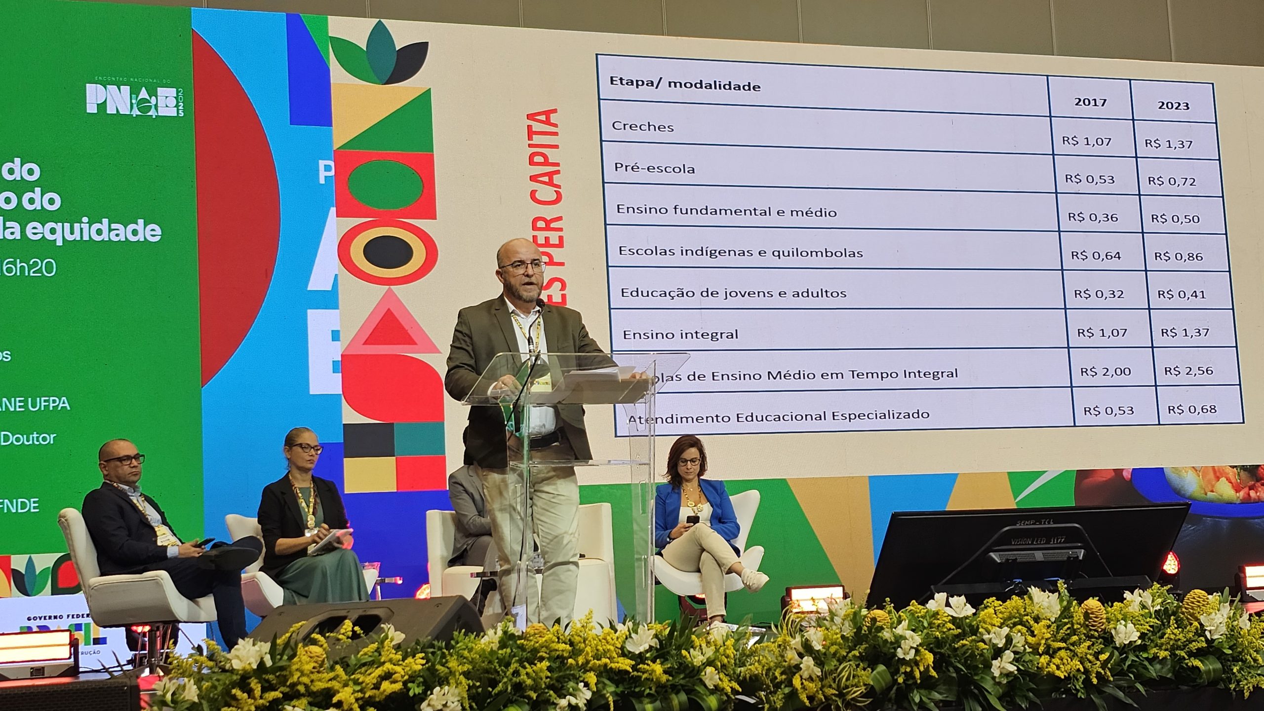 Na oportunidade, Lugão também reforçou a necessidade de se calcular o per capita considerando o cardápio específico de cada etapa e modalidade, bem como de cada localização (campo/ cidade); definir critérios que respeitem as desigualdades econômico-financeiras dos estados e municípios; considerar o número de refeições oferecidas ao estudante por dia (ex. creche, escolas do campo…); e definir uma correção anual do valor per capita. “O financiamento deve ser mais debatido, quando vamos executar na ponta, mais de 2/3 do valor é investido pelos estados e municípios, acrescentou”.