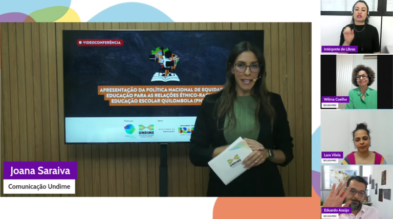 A Undime, em parceria com o Ministério da Educação (MEC), realizou videoconferência para apresentar a Política Nacional de Equidade, Educação para as Relações Étnico-Raciais e Educação Escolar Quilombola (Pneerq). O encontro on-line aconteceu nesta terça-feira (17) e foi transmitido pelo Conviva Educação e pelo canal do MEC no YouTube.